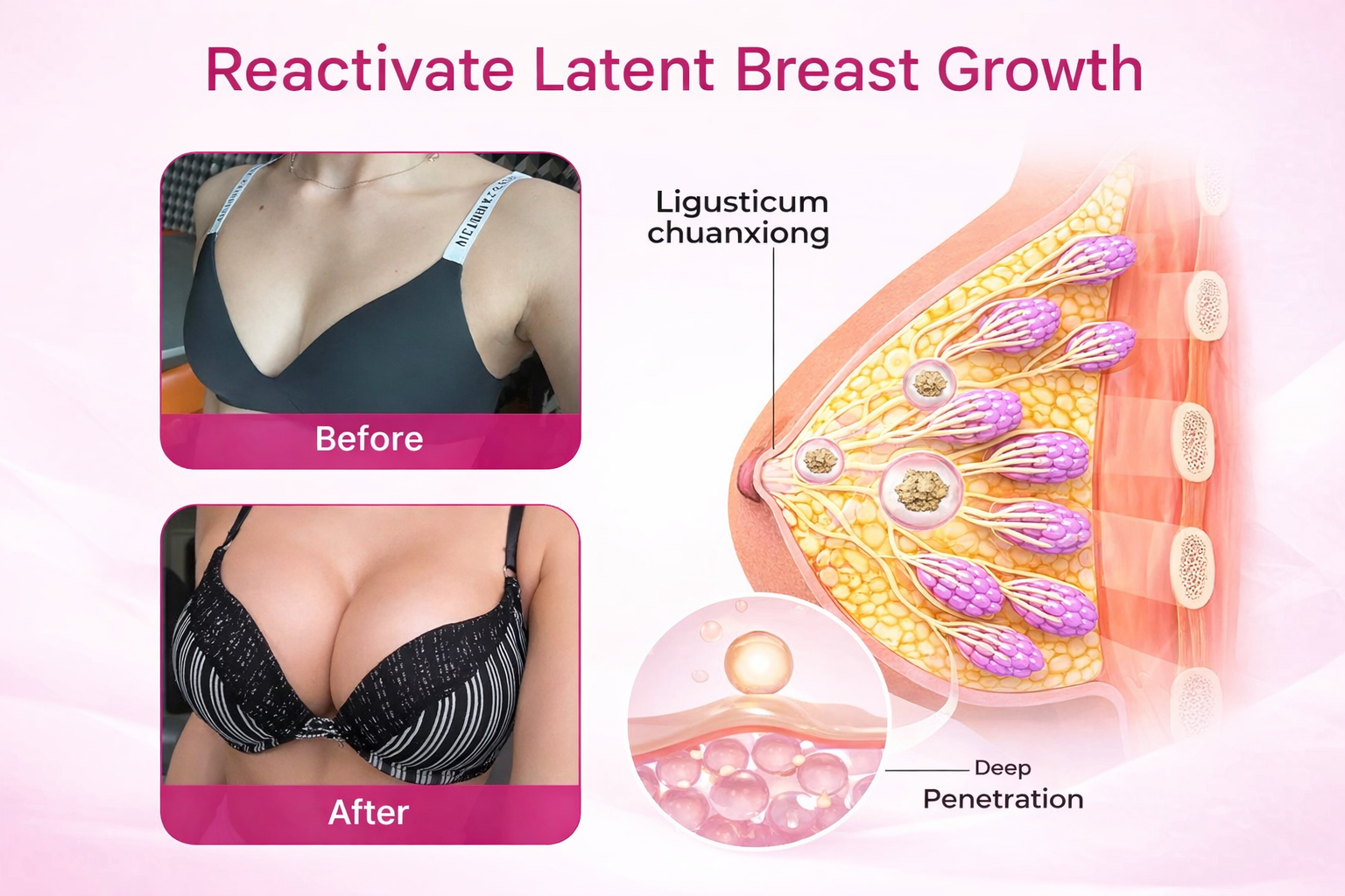 Breast and hip firming cream combines four botanical extracts to activate estrogen receptors, improve skin elasticity, and promote fat redistribution. It helps to firm the breasts, round the hips, and create naturally elegant curves. Key ingredients and benefits Fenugreek seed oil: natural estrogen activator and firming ingredient for the penis area.