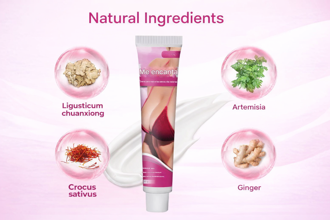 Sweet almond oil is rich in vitamin E, fatty acids, and squalene. It penetrates deeply into the dermis, providing long-lasting hydration and a natural glow. It improves dryness and sagging, while softening and smoothing the skin of the breasts and hips. At the same time, it strengthens the skin barrier, enhancing the appearance of your curves, which not only look better but also feel softer and more supple. According to the Principles of Reproductive and Developmental Biology, this combination of phytoestrogen-rich ingredients can visibly improve the appearance of the buttocks and breasts with consistent use. You can experience the same transformation